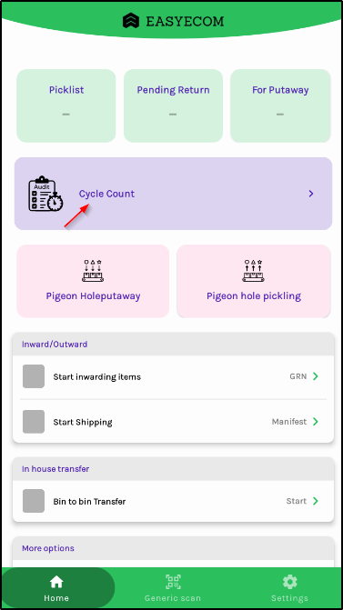 'Creating Cycle Count' to know how to get started with the cycle count process.