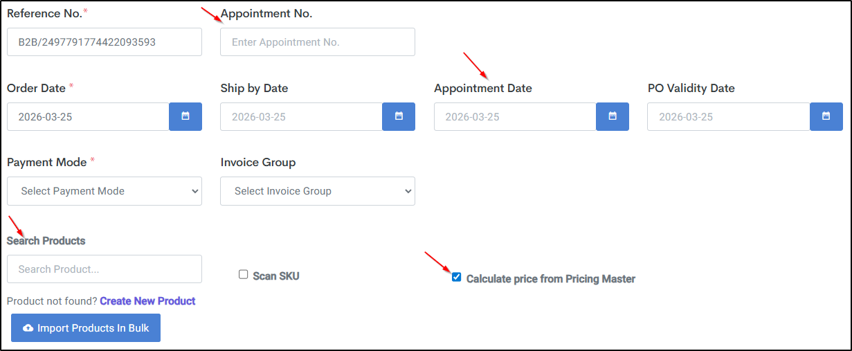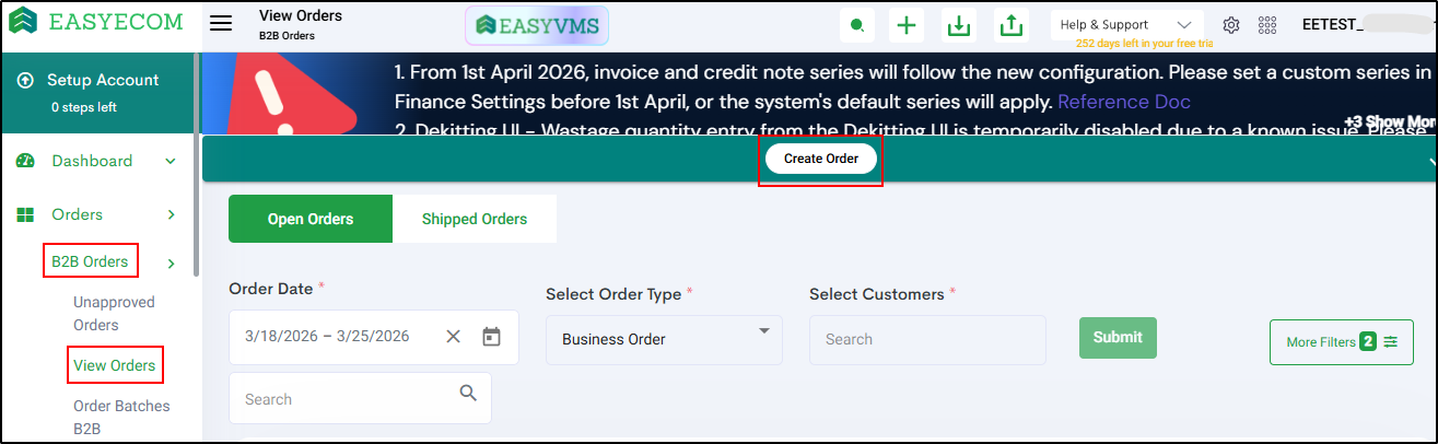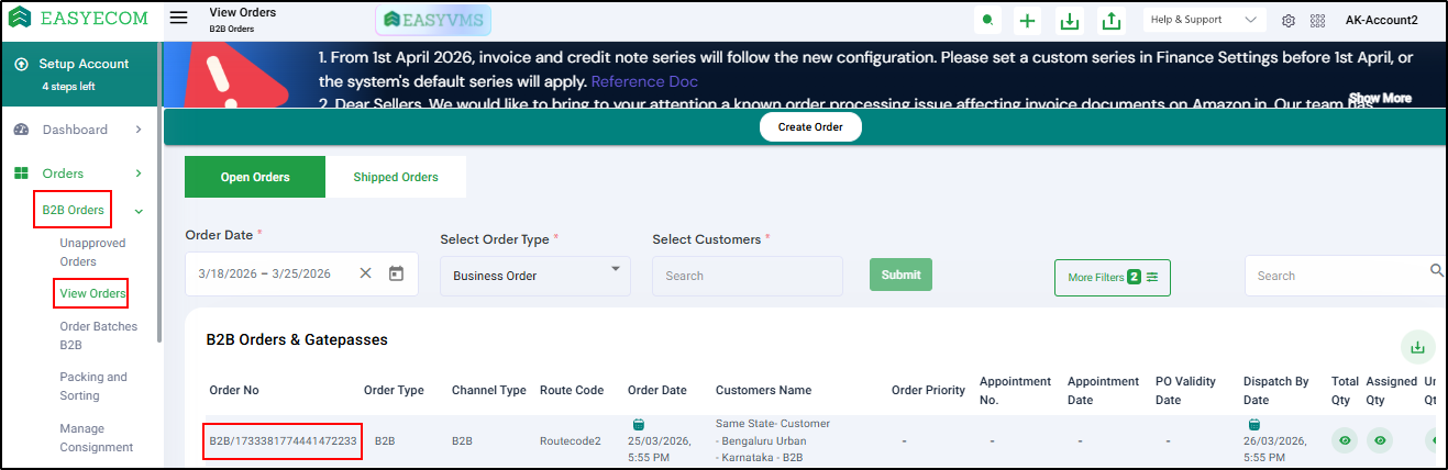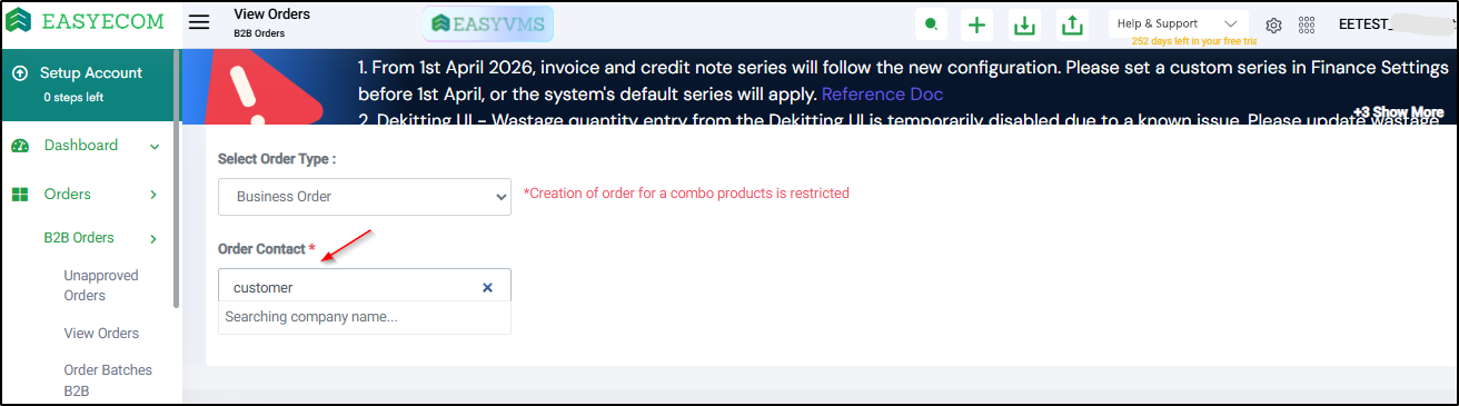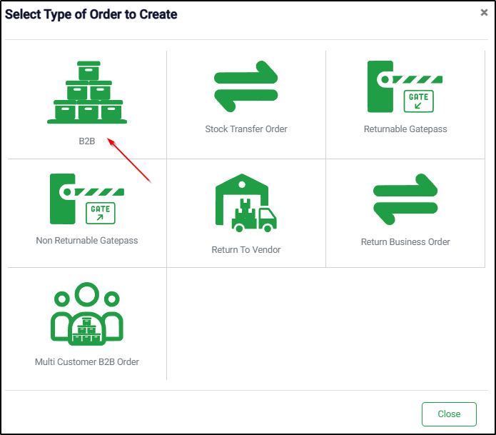 Step 2: Select Order Type as “B2B”