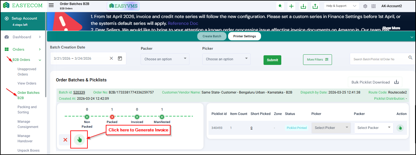 Generate invoice (Order Batches B2B)