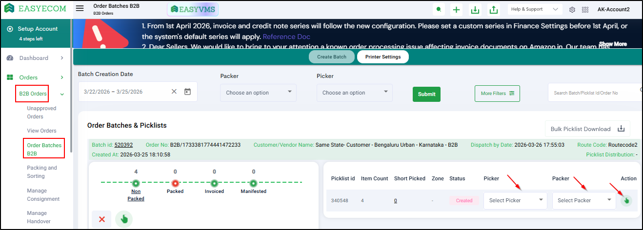 - Go to Order Batches B2B