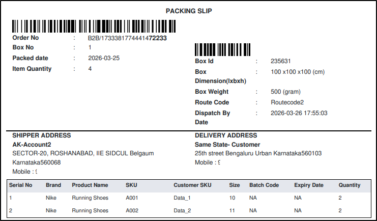 - Box Number → used in packing slip
