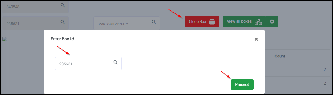 Step 11: Scan the Box ID > Scan the SKU/EAN/SERIAL/UoM