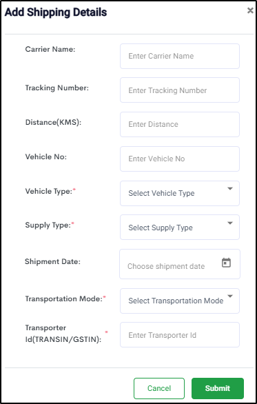 Or Select Manual and enter shipment details