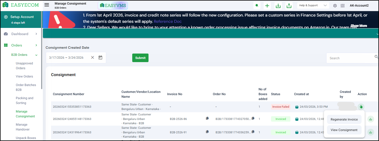 Software Plan : Growth & Enterprise Account Type : Seller Account Inventory Type : Serialized & Non-Serialized Feature description Easyecom announces a significant upgrade to its B2B order processing platform, prioritizing enhanced efficiency, ...
