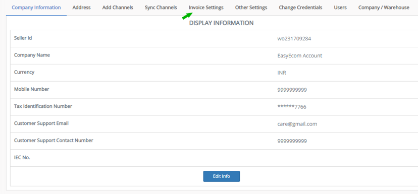 Here under the “Invoice Display Settings” please enter your email address and contact number that needs to be printed on the invoices and then click on the “save” button.