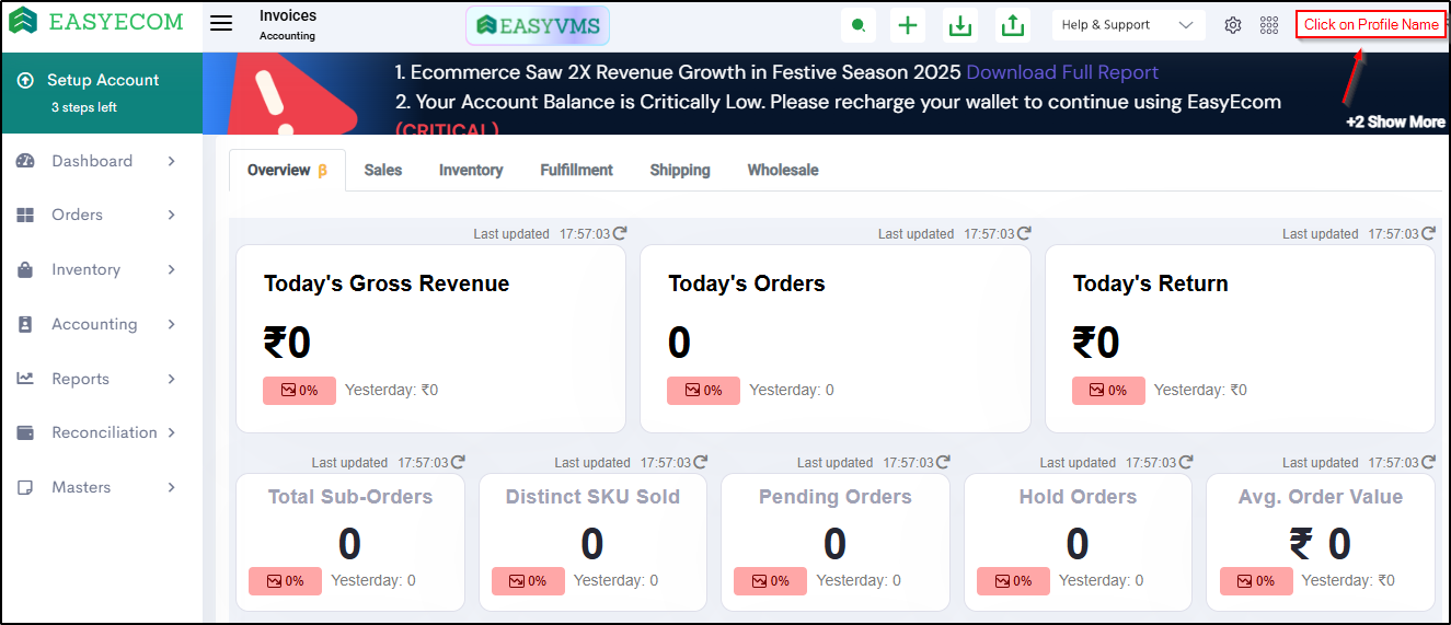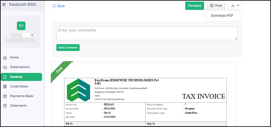 To track your EasyEcom’s billing invoice please follow the below-mentioned 4 step process. This invoice can then be used for the tax filing purpose. Step 1: On the dashboard, click on the “Three dots aka meatball menu" Step 2: Click on the ...
