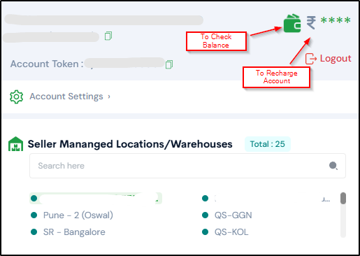 - Click the Wallet icon to check for Balance, invoices, consolidated reports, etc.