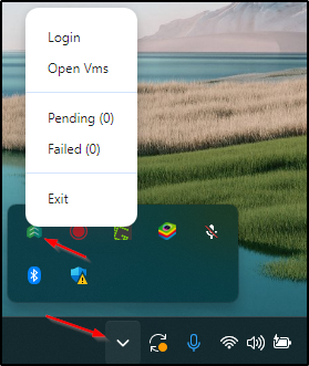Locate the EASYVMS icon, right-click on it to reveal the following options: