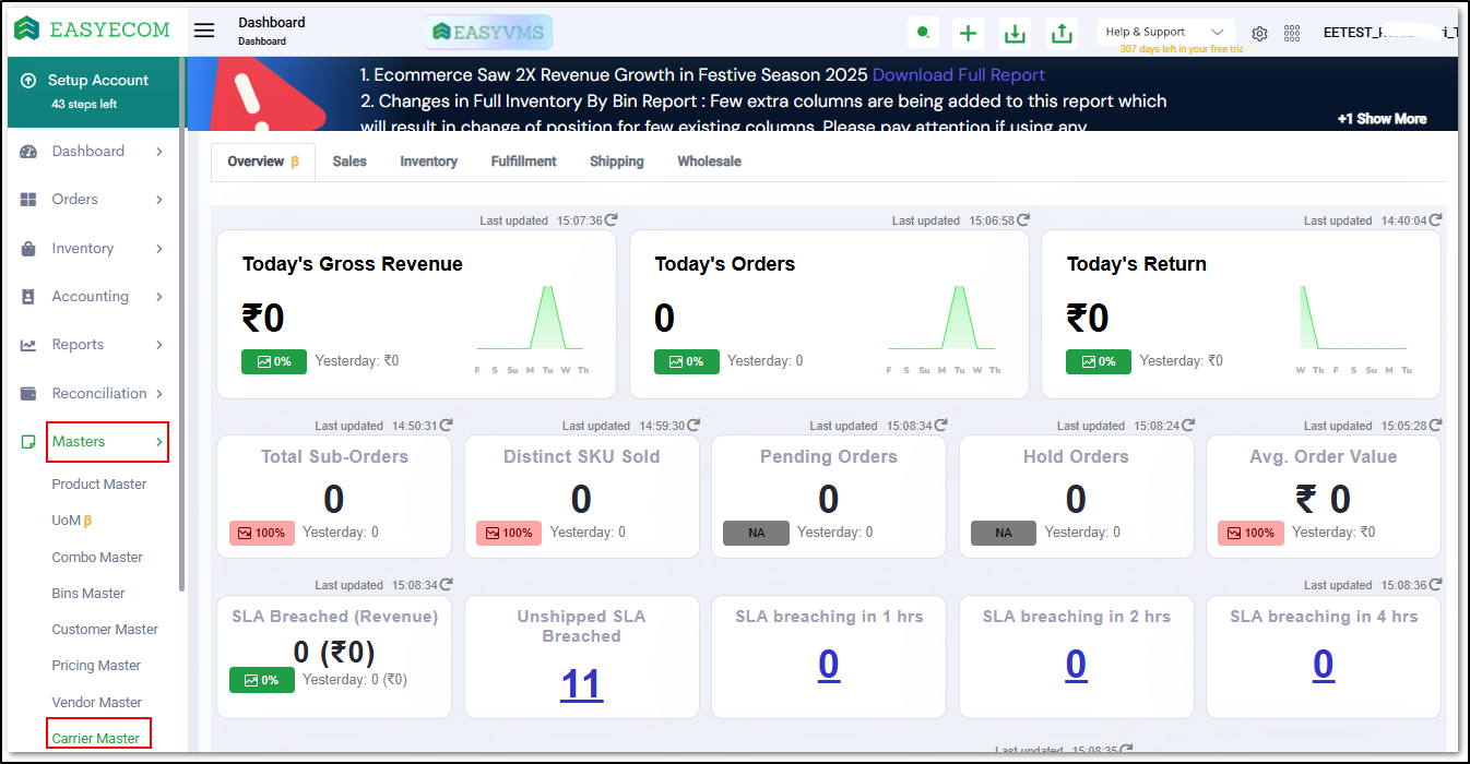 Ekart can be integrated with EasyEcom as a shipping carrier to manage shipment creation, shipment tracking, and return processing.