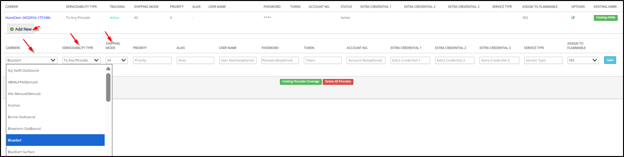 Hamburger Menu → Masters → Carrier Master → Add New