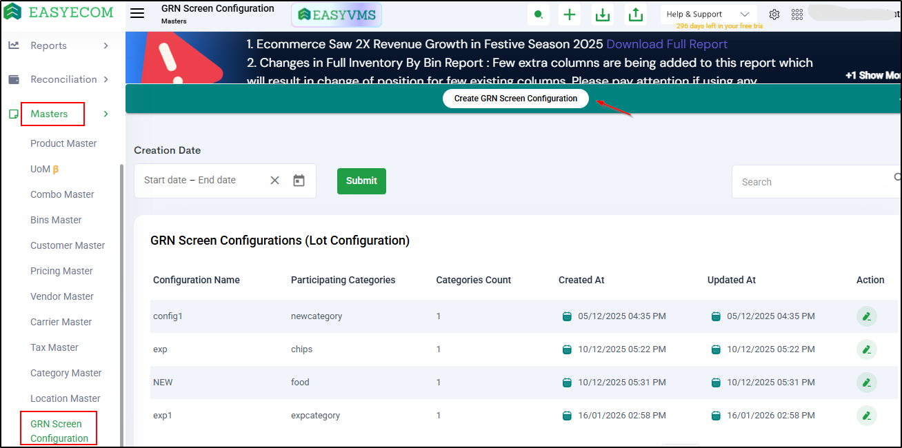 To enable the GRN screen configuration for your account, please contact the EasyEcom support team.