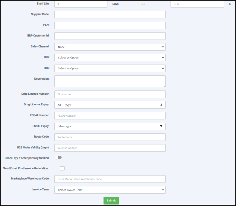 Ship To GSTIN can be entered if GSTIN for the dispatch address is available.