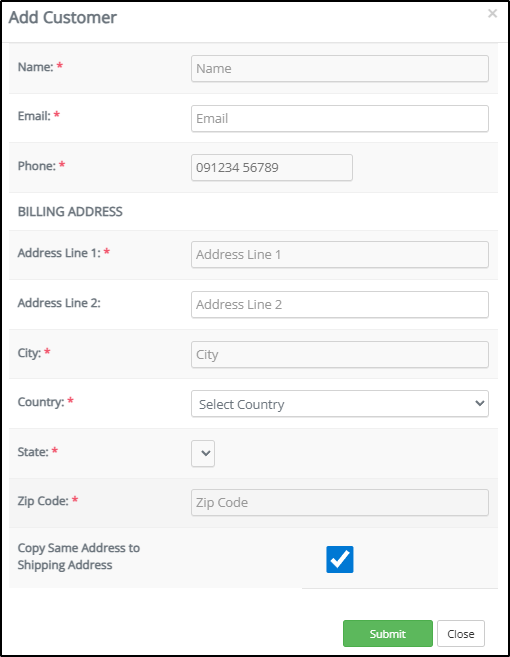 Step 3: Mention the details of the customer and click on 'Submit'