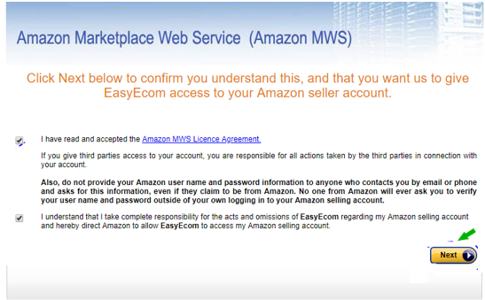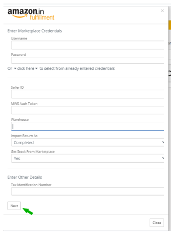 You are required to enter your Username, Password, Seller ID, MWS Auth Token and Tax Identification Number.