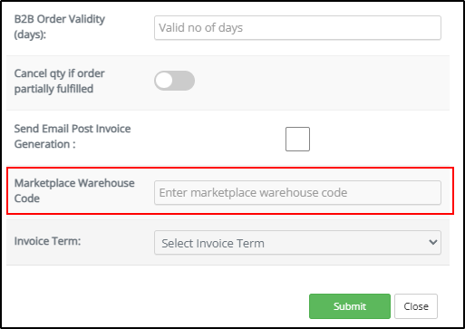 Marketplace Warehouse Code in Customer Master