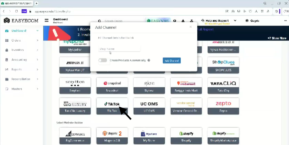 By following the below-mentioned procedure you can easily integrate TikTok Marketplace with EasyEcom.