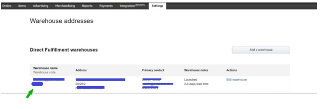 Now copy your Warehouse Code. It is mentioned under the Warehouse Name column.
