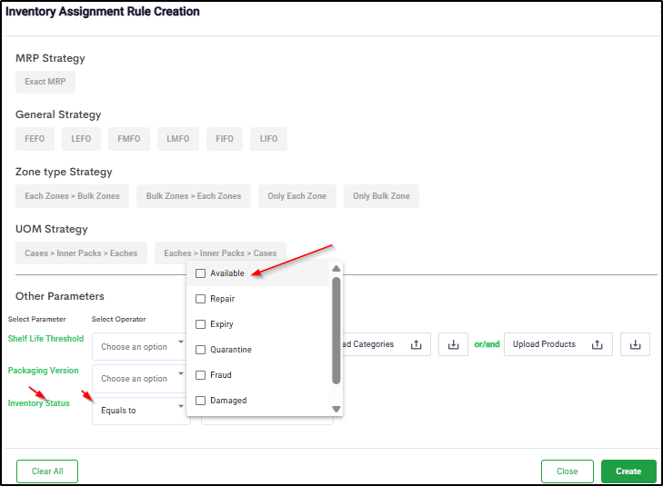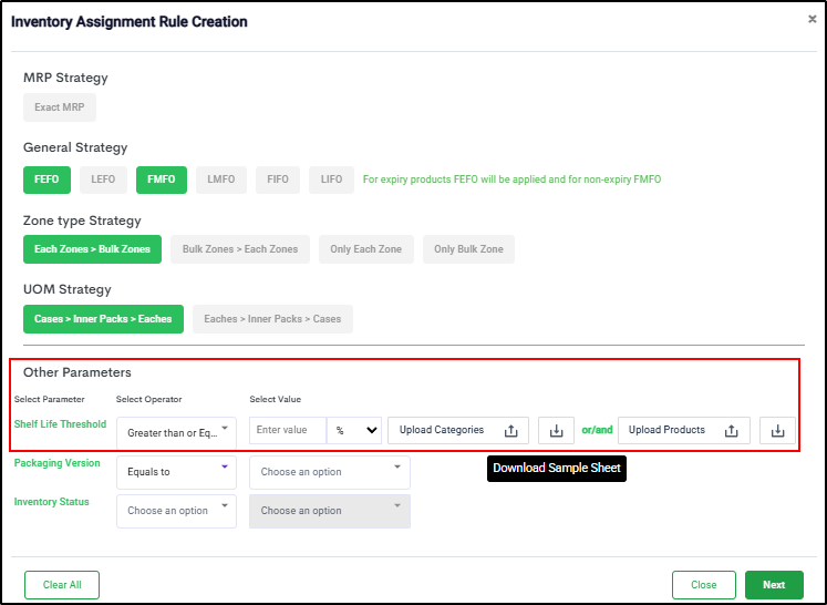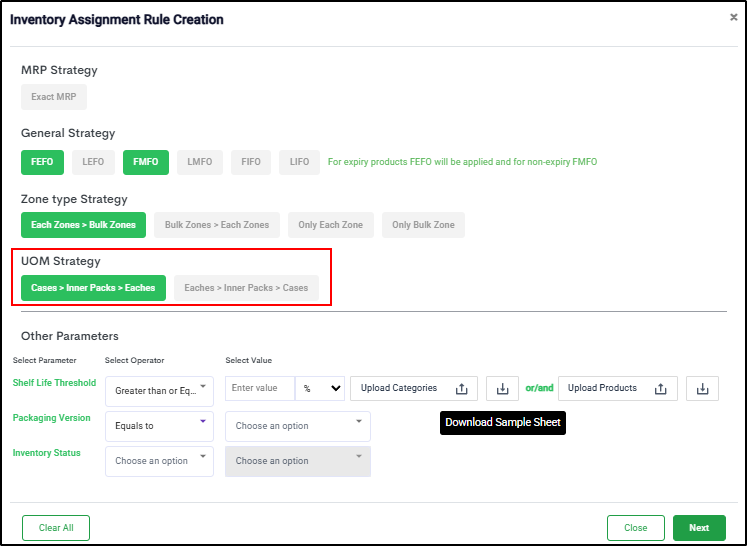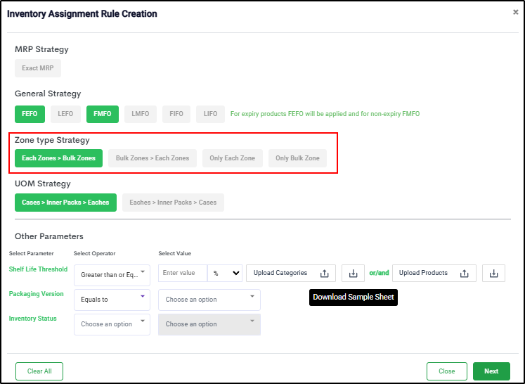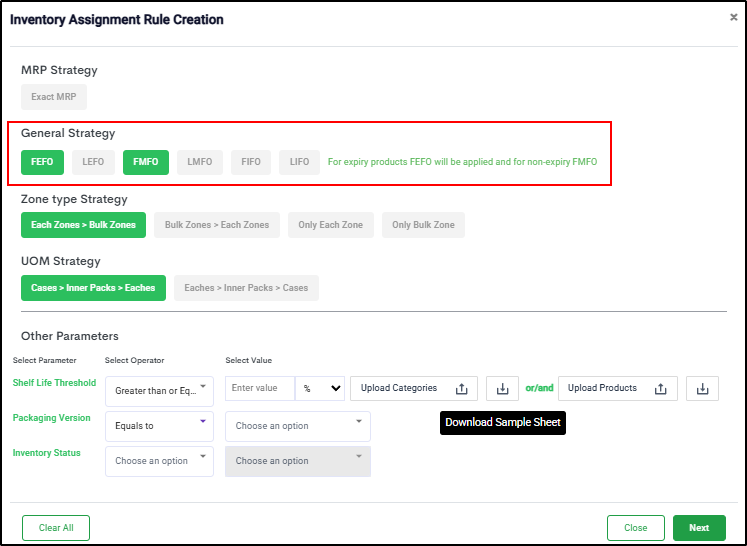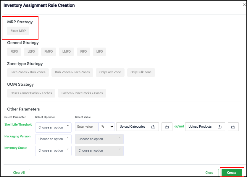 Inventory Assignment Rules can be created using only one strategy or parameter.
