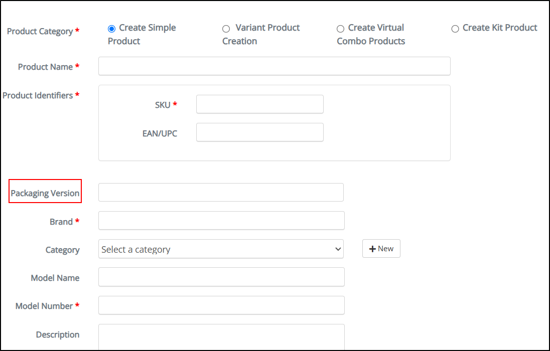 Packaging Version is used when the same product exists in multiple packaging formats.