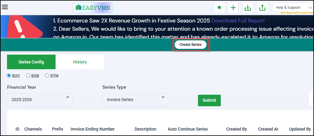 This article explains how sellers can configure numbering series for Invoices, Credit Notes, and Challans using the New Series Configuration module in Easyecom.
