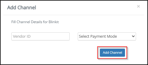Once you click on “Add Channels” you will be navigated to the following page. Here please click on the “Blinkit”.