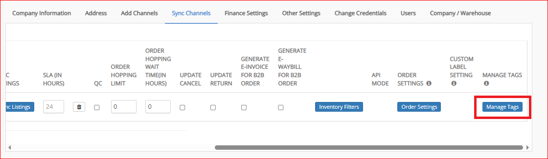Scroll to the right and go to the "Manage Tags". Click on the "Manage Tags" option in front of Shopify.