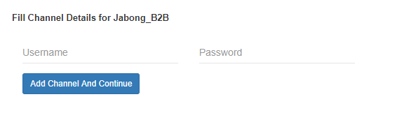 Step 4: Give the User name and Password of JabongB2B and then click on Add Channel And Continue.