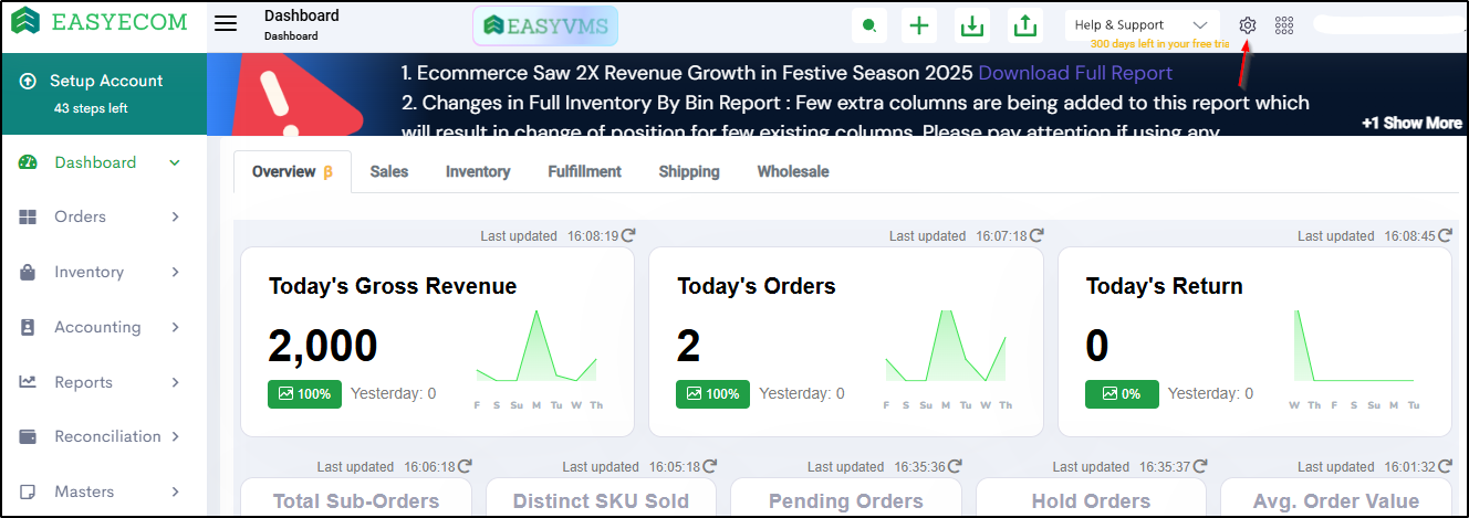 By following the steps below, you can integrate Blinkit with EasyEcom. Important Points The EasyEcom webhook must be enabled in the Blinkit account to complete the API integration. This is handled by the Blinkit team. The integration must be ...
